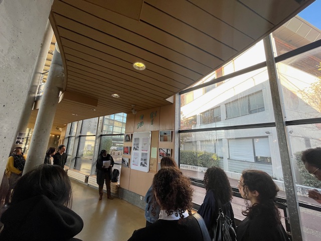 Mme El Hammiri a présenté la collection de l'artiste Mohamed Bourouissa, montrant à travers ses photographies le vivre-ensemble, les valeurs des rencontres et la place de l'individu dans une société parfois bouleversée. Dans cette continuité, Mme Hady Bousso a présenté la collection de l'artiste lyonnaise Fabienne Ballandras, des petites photographies pour de grands messages, parfois coups de poing, sur les inégalités sociales, le mal logement, et la recherche d'un monde meilleur. Le travail autour des slogans et des images parfois chocs appellent la réflexion et la sensibilisation. Les élèves Nunzia et Tao ont accompagné Mme Bousso, en lisant leur texte écrit dans le cadre du projet du vivre-ensemble.